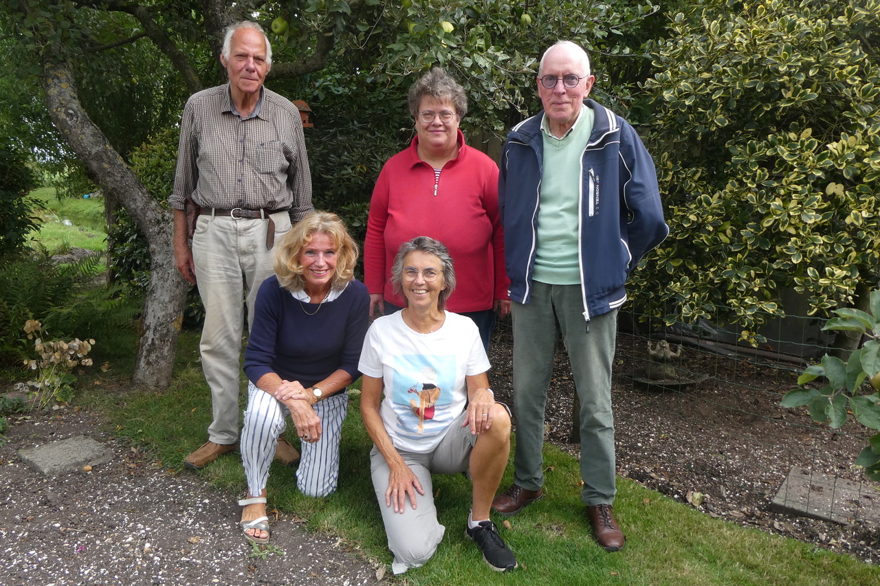 Een foto van de bestuursleden, datum 4 september 2025. Vooraan Greta Honingh en Adri Pronk.